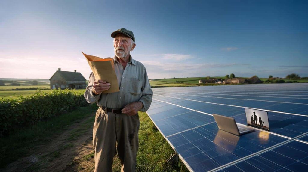 The story starts with a quiet field at the edge of a village, the kind of land you drive past without even seeing. For decades, a retired farmer walked that soil, checked the fences, watched the seasons change. Then one day, a solar company knocked on his door with a smile, a glossy brochure, and a promise: “You don’t have to do anything, and you’ll get paid every year.”