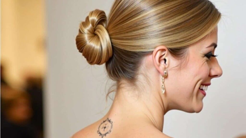 • Question 5Can I use this bun for a more formal event?Yes. Keep the bun a little lower, smooth the front slightly with a serum, and hide the elastic with a thin strand of hair wrapped around and pinned underneath for a cleaner finish.